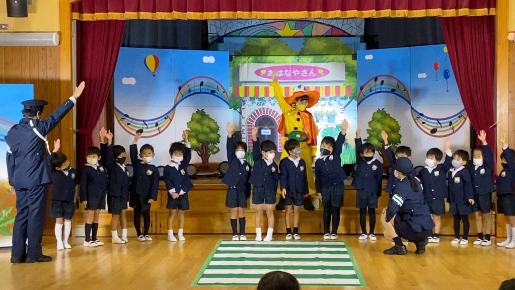 さあ、上手に横断歩道渡れるかなぁ?おまわりさんのおねーさんとお勉強!