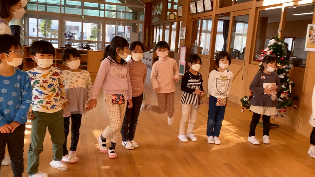 今回は年中さんの「ばら組」「ゆり組」、年長さんの「たんぽぽ組」「すみれ組」のみんな、先生方、合わせて約70人のおともだちが参加してくれたんだ。