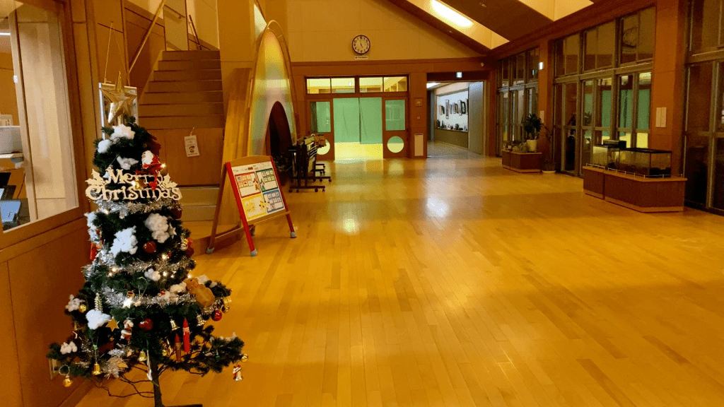天井が高くて開放感がある、素敵な園内にはクリスマスツリー!イイね^^