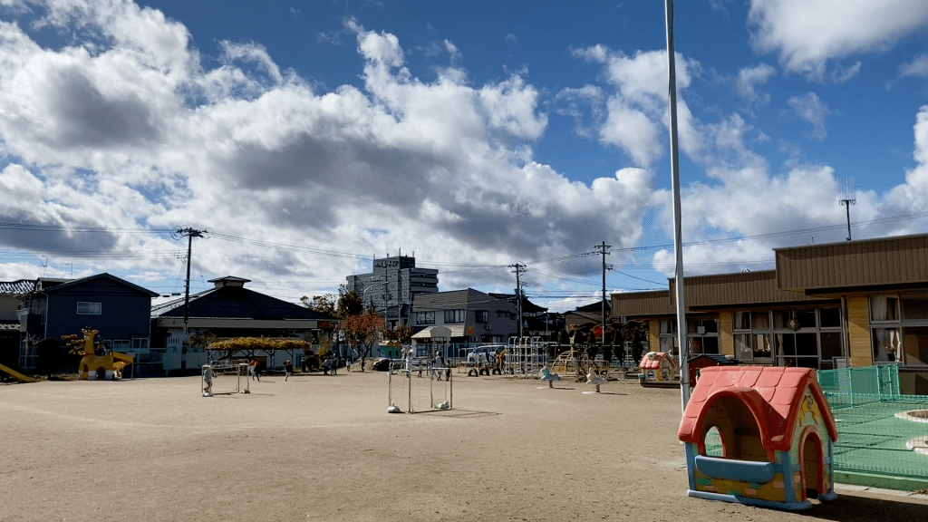 JR鶴岡駅から車で約10分。賑やかな通りを一本入ると、緑のフェンスに囲われた「みどり幼稚園」があるんですね♫