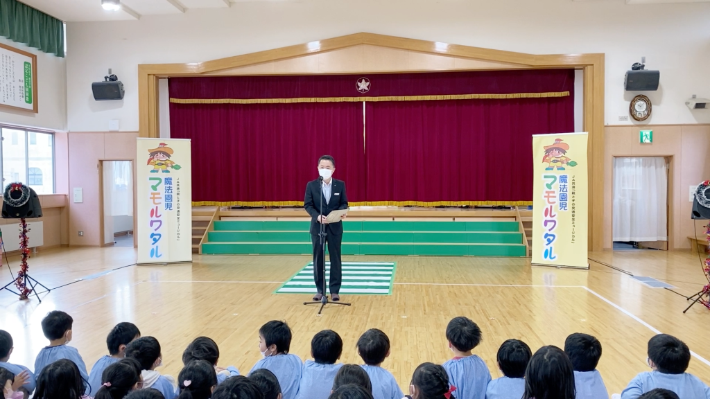 今回は年長さん「さくら組」26人、「さかき組」25人、「もみじ組」25人のみんな、先生方、合わせて約78人のおともだちが参加してくれたんだ。