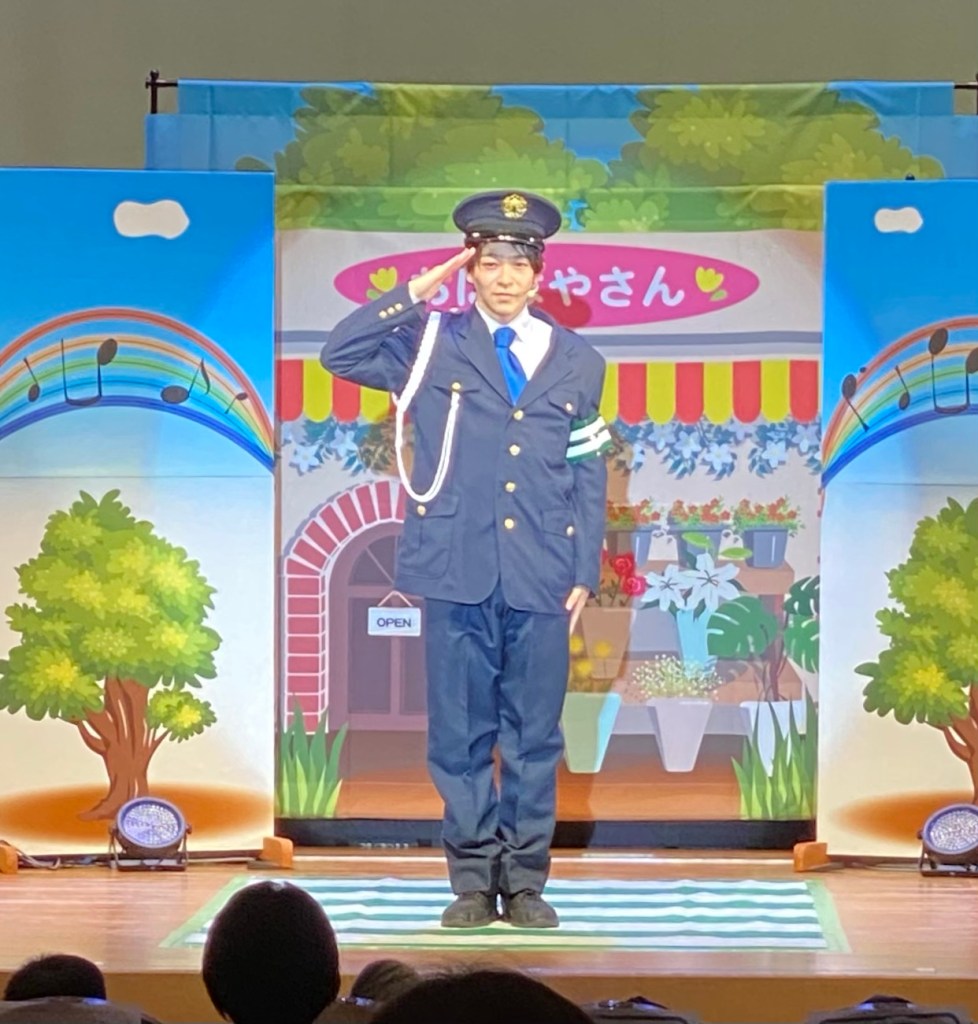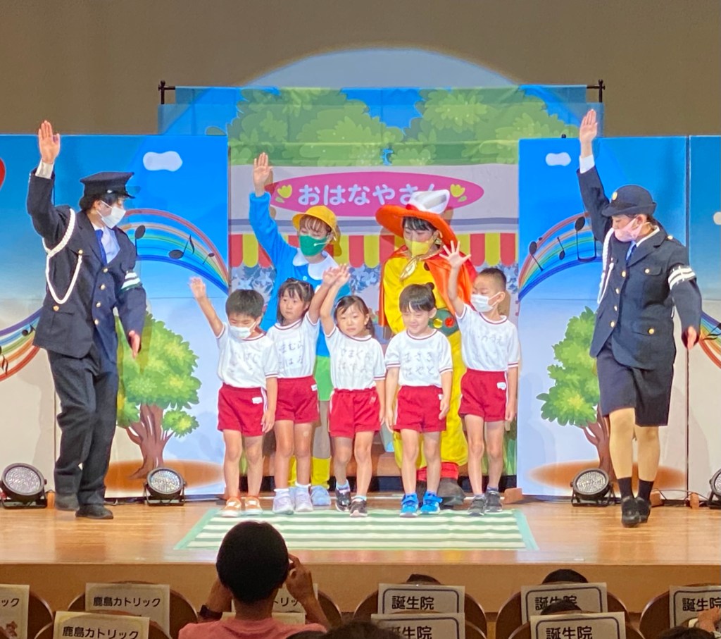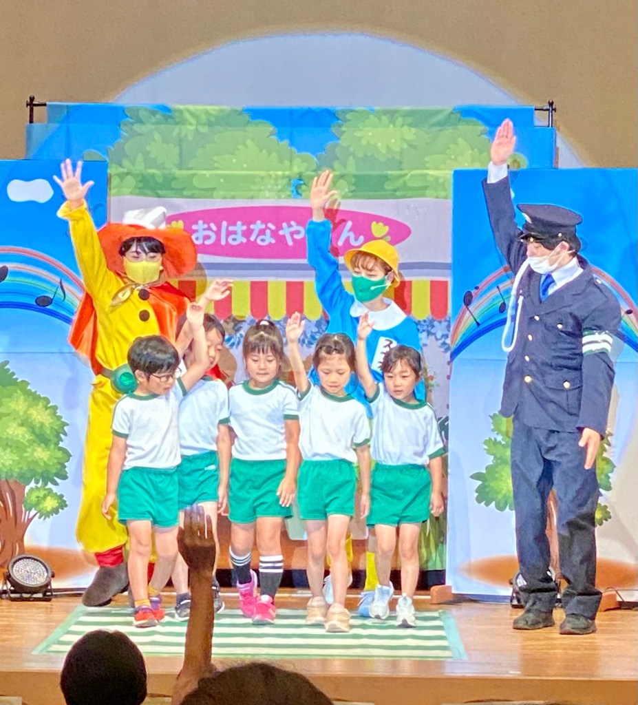 劇中には代表のお友達がステージに上がって横断歩道の渡り方を体験学習してくれました。
