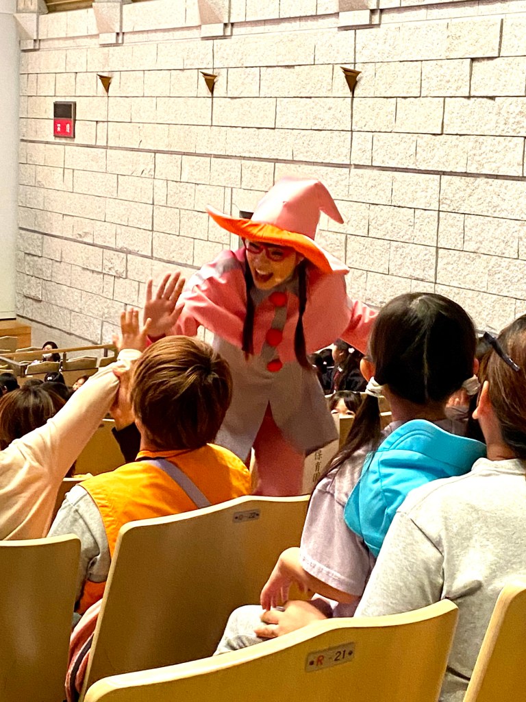 ミュージカルナンバーの間奏ではキャストが客席に下りて園児とハイタッチ!