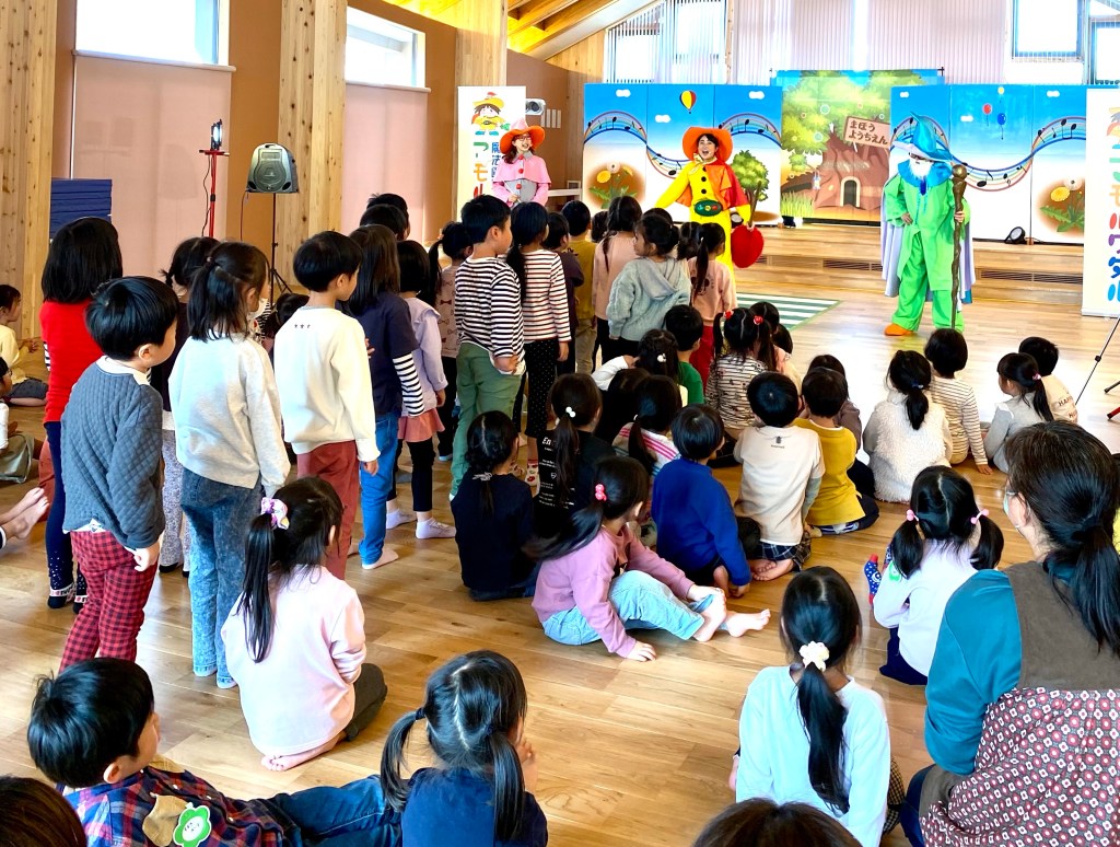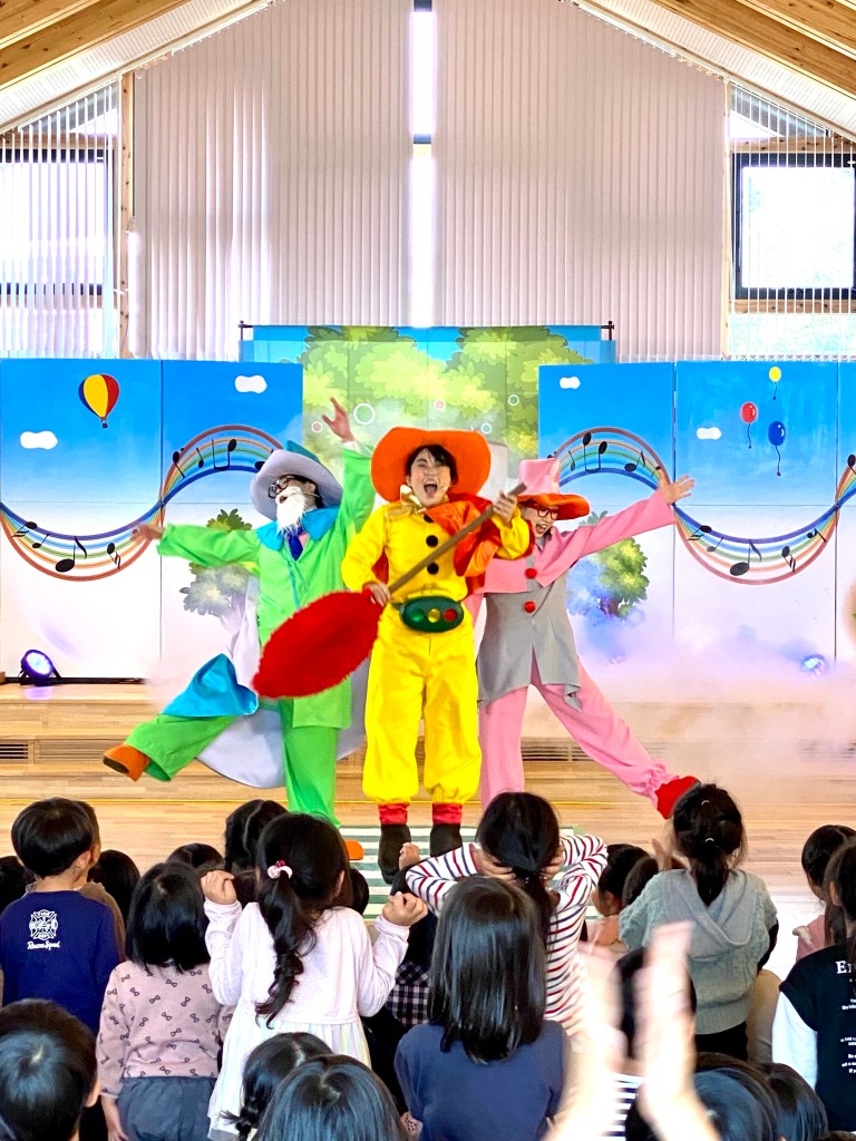 ステージがあるピッカピカのホールではマモルワタルが初めての外部イベントだそう。最初はちょっと緊張気味に見えた園児たちもミュージカルが始まると大きな声で答えてくれました!