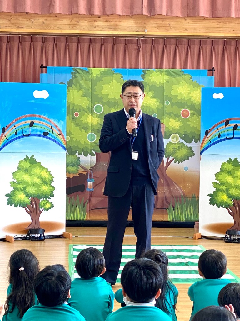 江尻園長先生とJA福島さくら泉支店長大平さんのご挨拶でミュージカルスタート!