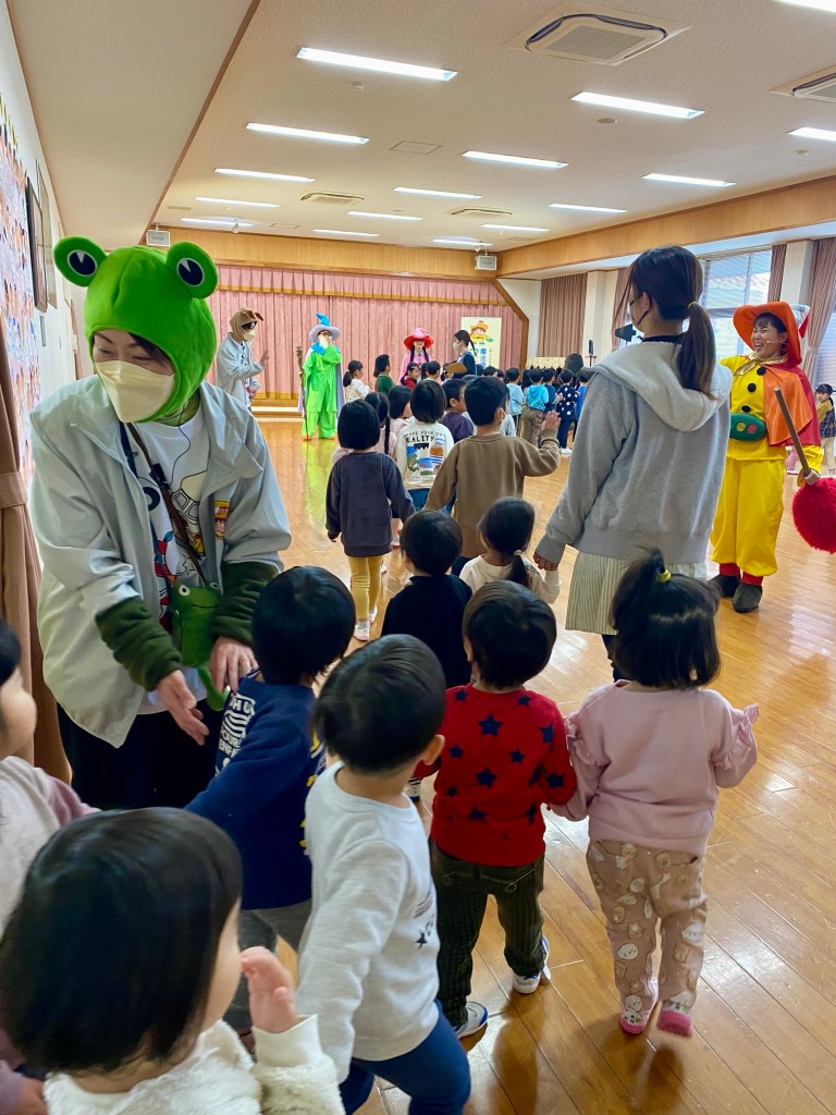 まずはカエルさんやマモルワタルくんたちがみんなをお出迎え